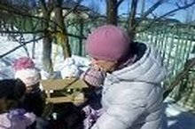 Вот так мы кормим птиц на прогулке: воспитатель Гошина О.В. и ребята средней группы. 24.03.2015