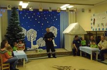 16 января воспитатель средней группы Гошина О.В. и музыкальные руководители Садыкова В.Р., Димитриева Л.Г. организовали досуг вместе с родителями «Азбука безопасности». Старший инспектор ОГИБДД Насибуллин Д.И. присутствовал на игре- соревновании и провел беседу с родителями на тему "Безопасная перевозка детей в автомобиле".