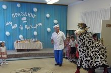Сегодня в детском саду был "Праздник молока ". Дети средней и старшей группы принимали активное участие.