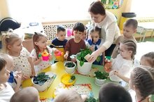 В детских садах уход за комнатными растениями может включать занятия, направленные на формирование знаний о растениях, их потребностях и правилах ухода. Такие занятия могут проводиться в уголке природы, который оснащён комнатными растениями, необходимым материалом для ухода.