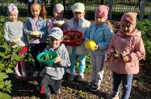 Вот и настала пора собирать урожай! Ребята могли наблюдать рост овощей с нуля, поливали и заботились о них. И наконец смогли собрать первый урожай!
