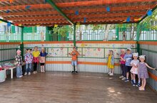 Дети подготовительной группы оформили веранду, так как большую часть времени летом они проводят на свежем воздухе, и прогулочный участок превращается в место для разнообразных игр, образовательной деятельности, наблюдения за растениями, приобщения воспитанников к труду и создания условий для познавательной деятельности.