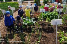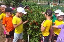 Дети подготовительной группы очень любят наблюдать за плодовыми деревьями и кустарниками в саду нашего детского сада. Вот и сегодня, они с удивлением отметили, что плоды красной смородиной уже покраснели и скоро их надо будет собирать. Дети попробовали на вкус ягоды и сказали, что они ещё кислые, но очень сочные. Наблюдение продолжается...