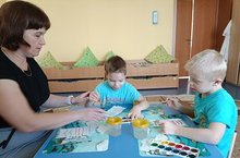 Сегодня дети с удовольствием украшали полотенца узорами.