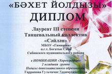 Яр Чаллы шәһәрендә 29 нчы ноябрь көнне «Бәхет йолдызы» ачык республика-татар милли сәнгать фестиваль - конкурсы булып узды. Әлеге бәйгедә Саба гимназиясенең “СӘЙЛӘН” бию коллективы (җитәкчесе Гаррапова Гөлчәчәк Хаҗимөхәммәтовна) уңышлы чыгыш ясап, III дәрәҗәдәге дипломга ия булдылар.