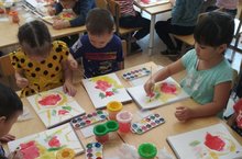 Балаларны татар милли бизәкләре белән таныштыруны дәвам итеп, уртанчылар төркемендә рәсем эшчәнлегендә алъяпкычка бизәкләр төшерделәр. Алъяпкыч бизәлешендә татар милли бизәкләрен кулландылар. Матур бизәкле алъяпкыч кияргә теләгән Айсылуга ярдәм итттеләр.