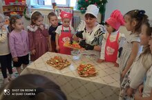 Атна дәвамында бакчабызда һөнәрләр белән танышу алып барылды. Шул уңайдан , уртанчылар төркемендә тәрбияләнүче Залилова Лиана кызыбызның әнисе - Гөлгенә ханым пешекче һөнәре белән якыннан таныштыру максатыннан, безгә кунакка килде. Гөлгенә ханым балаларга җиләк-җимеш һәм яшелчәләрдән төрле кабымлыклар ясау буенча мастер-класс күрсәтте. Соңыннан үзләре ясаган тәм-томнардан авыз иттеләр. Әлеге очрашу балаларда пешекче һөнәренә кызыксыну уятты. Алар бик зур игътибарлык белән тыңлап, куанып утырдылар.