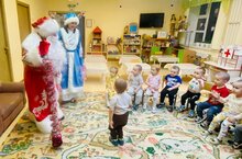 Сегодня в нашем ДОУ побывал долгожданный и самый главный персонаж Нового года - Дедушка Мороз. Он пришёл со своей внучкой - Снегурочкой, чтоб подарить детям подарки и праздичное настроение. Гости поздравили всех с наступающим Новым годом.
