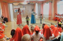С целью обобщения тематической недели, сегодня прошло итоговое мероприятие. К Матрёшкам в гости пожаловали румяные круглолицые Алёнушка и Матрёнушка. Они пришли не одни, а с подружками-малышами. Дети с удовольствием рассказывали стихи, потешки, отгадывали загадки, водили хоровод, танцевали, пели частушки, украшали костюмы матрёшек и играли в игру «Карусель». Такие мероприятия помогают способствовать развитию эстетического вкуса, формированию прекрасного, уделять внимание духовному воспитанию, формировать творчески развитую личность. Алёнушка и Матрёнушка постарались, чтобы дети почувствовали атмосферу добра, дружбы и любви, а на прощание устроили фотосессию!