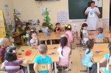 Китап – киңәшчең синең, Дустың, ярдәмчең синең, Ул хөрмәткә бик хаклы, Кадерлә син китапны. Почмакларын бөкләмә, Битләрен дә ертма син, Керле кулың белән аны Беркайчан да тотма син. Х.Шабанов. «Кадерлә син китапны» шигыреннән өзек. Бүген кичке якта мәктәпкә хәзерлек төркеме белән китаплар турында әңгәмә-сөйләшү үткәрдек. Китап почмагындагы кайбер китапларны төзәттек, ябыштырдык. Китап турында балаларга мәкальләр әйтелде ( Китап – белем чишмәсе. Китапның белмәгәне юк. Куп укыган күп белер.) Максатыбыз китапка мәхәббәт, сакчыл караш тәрбияләү. Балалар бик теләп катнаштылар. (Тәрбияче Мустафина Г. К.)
