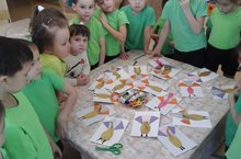 Сказочная птица 08.02.2018 Основной целью занятия по аппликации в старшей группе является ознакомление с симметричным и силуэтным вырезанием, использование различных способов крепления деталей аппликации на фон и создание объемной аппликации из бумаги. Ребята старшей группы вместе с воспитателем Сафиной Р.Р сегодня создали образ сказочной птицы, украшали ее отдельные части и детали изображения. Все остались довольными.