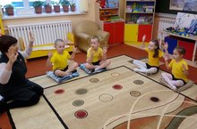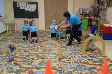 Дети первой младшей группы на занятии физкультуры.
