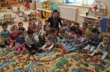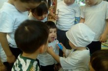 Сәламәтлек атналыгы башланып китте... шунлыктан мәктәпкә әзерлек төркемендә буген кунак! "Кыңгырау" балалар бакчасында озак еллар шәфкать туташы булып эшләгән, хәзерге вакытта лаеклы ялда булган һәм дә инде төркемебездә тәрбияләнүче Адельнең дәү әнисе булган Ильясова Рисәлә апа кунакка килде! Ул балаларга имгәнгәндә беренче ярдәм күрсәтү кагыйдәләрен аңлатты, бинт ярдәмендә яраларны ничек бәйләргә кирәклеген күрсәтте, кан басымын үлчәү аппараты белән таныштырды, кан басымын үлчәргә,тамакны тикшерергә,фонендоскоп ярдәмендә упкәне тикшереп карарга ,пульсны табып йөрәк тибешен тикшеререргә өйрәтте. Әлеге очрашу балаларга бик кызыклы булды, алар узләренә бик күп яңалык алдылар. Безгә кунакка килгәне өчен Рисәлә апага бик зур рәхмәтләребезне белдерәбез!