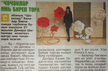 Әле генә театр сәхнәсен яулап кайтып куанган идек, тагын бер куанычлы хәбәргә ия булдык. Безнең тәрбиячебезнең, Шиһапова Динара Нурислам кызының, интернет челтәре аша кул эшләрен күреп алып, "Ирек мәйданы" газетасының редакторлары кызыксынып, интервью алдылар. Аның бу басмасы белән гәҗитнең соңгы санында таныша аласыз. Дөрестән дә, Динара турында әйтмичә калып булмый. Кайсы яктан гына алсак та, безнең бу кызыбыз тыйнаклыгы, уңганлыгы белән аерылып тора. Балалар бакчасын гүзәлләндерү буенча бик күп көч куя. Нәтиҗәсе буларак, аны бүгенге көндә республика күләмендә күреп алганнар икән, димәк бу инде эшеңә бик зур бәяләмә дигән сүз.