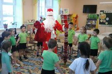 Дед Мороз вновь встретился с детьми старшей группы. Он с детьми играл в разные игры, поздравлял их с 2018 годом – ГОДОМ СОБАКИ. Дети с радостью водили хоровод, играли, танцевали и любовались шутками, подарками Деда Мороза.