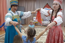 С 7 часов утра детский сад гостеприимно открыл свои двери для наших дорогих родителей. Так как у нас каждую среду проходит день русского языка, гостей у дверей встречала героиня из сказки - сестрица Алёнущка. Она всех встречала с интересными загадками, песнями и играми. Взрослым выпала возможность вместе со своими детьми прожить ещё один день в детском саду. Родителям было предложена программа «С раннего утра» в ходе, которой можно было наблюдать за отлаженной, чётко спланированной деятельностью всего коллектива ДОУ.