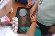 Эксперименты 17.07.2017 Окружающий нас мир широк и разнообразен, ребенок существо любопытное и чем больше он узнает сейчас, тем проще ему будет в будущем. Ребята старшей группы любят экспериментировать. Сегодня они совместно с воспитателем Сафиной Р.Р рассматривали песок через лупу с целью определения формы песчинок. Брали песок, черную бумагу, лупу. Оказывается песок состоит из очень мелких зернышек – песчинок. Они круглые, полупрозрачные. В песке каждая песчинка лежит отдельно, не прилипает к другим песчинкам. Эксперименты положительно влияют на эмоциональную сферу ребёнка, на развитие его творческих способностей, они дают детям реальные представления о различных сторонах изучаемого объекта, его взаимоотношениях с другими объектами и со средой обитания.