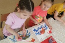 15 март көнне зурлар төркеме балалары традицион булмаган ысул белән рәсем ясадылар. Атналык тема: “ Су-яшәү чыганагы”. Шунлыктан балалар гап-гади теш щеткалары ярдәмендә диңгез ясадылар. Бу ысул балаларга бик ошады, алга таба да әлеге ысул ярдәмендә рәсем ясарга дигән фикерне барысы да хупладылар.