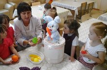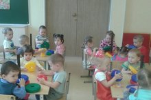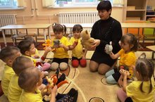 Сегодня в первой младшей группе прошло занятие на тему "Осенний урожай". В гости пришел зайчик и принес корзину с осенним урожаем. Дети поздоровались с зайчиком на русском и татарском языках,они с удовольствие общались и повторяли названия овощей. Зайка также поинтересовался знанием цветов овощей и фруктов,которые он вырастил на своей грядке. На прощанье Заяц станцевал с детьми веселый танец и попрощался , но обещал вернуться снова.