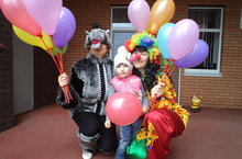 Вечером, когда дети с родителями возвращались домой, сказочный герой-Волк угощал всех с праздничным тортом!