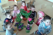 Сегодня ребята первой младшей группы помогали взрослым пересаживать комнатные цветы-фиалки. И очень много интересного узнали о них. Фиалки живут долго. Для более обильного цветения их лучше пересаживать через пару лет.Они не любят прямые солнечные лучи.Поливают растения около 2 раз в неделю .Хотя фиалки любят влажный воздух, опрыскивать их нельзя.Отцветшие цветки, поврежденные или сломанные листья необходимо сразу удалять.