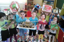 Бүген, икенче кечкенәләр төркеме балалары, тәрбияче апалары Гөлия Рафаилевна ярдәмендә бик матур открыткалар ясадылар. Бөек Җиңүнең 70 еллыгы турында әңгәмә үткәрелде, презентацияләр карадылар. Георгий лентасы ни аңлата? Нәрсә соң ул парад? Ветераннар кемнәр алар? һәм башка бик күп сорауларга җаваплар алдылар. Ерак бабайларының орден, медальләрен карадылар, бабалары турында турында горурланып сөйләделәр.