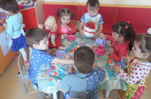 1 нче кечкенэлэр торкемендэ буген бэйрэм-Эминэнен туган коне. Балалар сюжетлы-ролле уен уйнадылар. Уеннын бурычлары: инициативалы сойлэмне,игьтибарны, хэтерне устеру, башкаларга морэжэгать итэргэ телэк тудыру;узара аралашуга омтылыш тэрбиялэу.