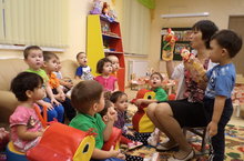 Малыши прекрасно адаптируются к детскому саду. Сегодня к ним приходила в гости Зайчиха.