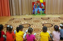 В нашем саду прошёл День Театра. Воспитатели перевоплотились в сказочных героев и увели маленьких зрителей в мир добра и волшебства.