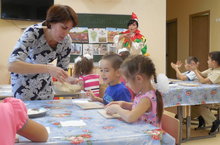 Тәрбияче Ильмира Хаҗинур кызы, “Әтәч” булып, нәниләр белән ипи әвәләде, ялкаулыкның начар гадәт икәнлеген аңлатты.
