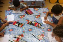 Уртанчылар төркеме балалары, төсле буяулар ярдәмендә, кисточка белән ак кәгазьгә үзләре яшәгән йортны ясадылар. Рәсемнәр төрле, фантазиягә бай килеп чыкты.