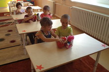 Тәрбияче Гөлия Рафаиловна Нигъматуллина икенче кечкенәләр төркем балалары белән ак кәгазь битенә үзләренең фантазияләрен күчерделәр.