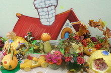 В нашем садике прошла грандиозная выставка, посвященная «Царице огорода» – тыкве. Дети каждой группы со своими родителями подготовили чудесные поделки. Здесь можно было увидеть и паука с паутиной, и клоунов, и карету, и часика, и… И всё это было изготовлено из тыквы и кабачков. Этим мы убедились, как много родителей, талантливых и способных, будут учить своих детей творить чудеса. Родитель-ребенок-детский сад – это сплочённая цепочка творения и стремление к познанию.