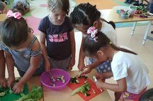 Җиләк-җимеш һәм яшелчәләр - витаминнар хәзинәсе ул. Бүген зурлар төркеме балалары үз бакчаларында үскән җиләк-җимеш, яшелчәләрен алып килеп бер-берсен сыйладылар. Витаминнар турында әңгәмә алып бардылар.