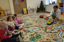 Беренче кече яшьтәгеләр төркемендә зур, кечкенәрәк, кечкенә төшенчәсен өйрәнделәр. Предметларны төркемнәргә аердылар. Кунакка килгән аюлар белән уйнадылар.