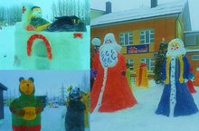 Яңа елны каршылаганда һәр оешма сыннар ясап үз биләмәләрен бизи. Быел да без балаларыбызга бәрәм рухын китереп бакча биләмәсендә татар һәм рус әкиятләре персонажларын кардан әвәләп буяп куйдык. "Бала белән күбәләк", "Шүрәле", "Маша и медведь", "Курочка Ряба", "Простоквашино", "Снежная королева", "Колобок", "Красная шапочка", "По щучьему веленью" әкиятләре геройлары - болар барысы да капкабыздан керә-керешкә каршы ала.
