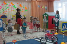 Воспитатели Ахметшина А.Г., Гиззатуллина А.А. с детьми средней группы показали развлечение «Правила, дети, изучайте, да в беду не попадайте!» с использованием объемного конструирования. Дети в своем интересном, музыкальном пути встретили Мери Поппинс и непослушного котенка, где помогли им добраться до детского сада, соблюдая правила дорожного движения. В конце мероприятия дети закрепили свои знания на макете дорожного движения, беседуя и анализируя свой пройденны путь.