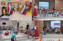 Быть патриотом – значит ощущать себя неотъемлемой частью Отечества. Дошкольный возраст как период становления личности имеет свои потенциальные возможности для формирования высших нравственных чувств, к которым, и относиться чувство патриотизма. Учитывая значимость патриотического воспитания, мы ввели в тематический план МБДОУ №6 "Балачак" тему "Наша Родина - Россия". На этой неделе все деятельности образовательного процесса былы направлены на изучение символов, традиций, народов, климата и многого другого интересного о России. Все полученные знания дети расскрыли сегодня на итоговом празднике посвященное Великой державе - России. Дети вместе с музыкальным руководителем Сафиной М.Ш. и с воспитателем по обучению русскому языку Зариповой Л.И. собирали флаг, играли русские народные игры, пели частушки и девочки средней группы исполнили танец "Матрешки". По традиции на празднике звучали мелодии разных народов нашей страны и прозвучал гимн России.