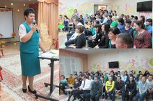 После окончания осеннего праздника, заведующий Халитова Ф.Р. провела всеобщее родтельское собрание, где были освещены вопросы организации образовательного процесса в ДОУ на 2016-2017 уч.год. Флюзия Рафаиловна в своем выступлении охватила все моменты, такие как: меню, режим работы, квалификация специалистов, оздоровительная работа и т.д. Старший воспитатель Вафина Л.И. ознакомила с методикой образовательно-воспитательного процесса и реализации УМК в ДОУ. Далее, заведующий поблагодарила всех родителей, которые принимали участие в оформлении участка детского сада и вручила им благодарственные письма, а 2 мл. группе детского сада передала переходящий кубок и грамоту за активную работу с родителями.