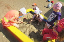 Нәниләрнең иң яраткан шөгыльләре - комлыкта уйнау. Ком төрле тәҗрибәләр, эзләнүләр аша үзенең төрле сыйфатлары белән танышу мөмкинлеге генә бирми. Ул балада уңай хисләр тудыра, табигатъне өйрәнүгә кызыксыну, кайгырту теләге формалаштыра. Саф һавада вакытта 3 төркем Гөлия Ринатовна җитәкчелегендә, комнан сарайлар ясады. Балаларга төрле сыннар, комнан фигуралар ясау бик ошады. Ком сарайлары бик матур килеп чыкты.