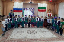 12 октябрь көнне зурлар һәм мәктәпкә әзерлек төркемнәре белән “Россия – зур дәүләт! Халыклар бердәмлеге “ атналыгын билгеләп уздык. Россиядә төрле милләтләр яши, алар бик дус- тату. Һәр милләтнең үз киеме, үз бәйрәмнәре, биюләре, савыт-сабасы, иң мөһиме- үз теле бар. Чара татар һәм рус милли киемнәре белән биюләре, җырлары, шигырләре белән үрелеп барды Һәм Россия дәүләте гимны белән тәмамланды. Балаларга бик кызыклы мавыктыргыч атна булды.