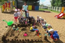 Бүген, 9 август көнне уртанчылар төркеме балалары тәрбияче Багавиева Г.Р. белән берлектә ”Ком шәһәрчеге” ясадылар. Комлык- бакчабызның иң популяр урыннарының берсе. Көн дә балалар комлыкта сюжетлы уеннар уйныйлар, хыяланып төрледән- төрле образлар тудыралар.
