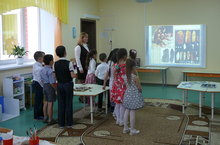 Халилова Сирина Басировна учит своих воспитанников узнавать на картинках значимые места села Шемордан.