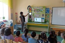 Наши воспитанники в игровой форме повторяли знания о светофоре, дорожных знаках, правилах поведения на дороге. Ребята закрепили свои знания, вспомнили основы безопасности на улице и проезжей части, поиграли подвижные игры и развили свои творческие умения на занятии.