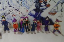 Сегодня, Камалутдинова Л.И. напомнила детям, как катались вчера на лыжах, и предложила слепить «Лыжников» с целью закрепления умения детей лепить фигуру человека в движении, передавая форму тела, строение, форму частей, пропорции. Ребятам в своей работе удалось передать кроме всего запланированного еще и настроение!