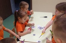 Воспитатель средней группы Эльвина Ильнуровна, учит детей вырезать круглые формы. Мотивация детей, такая как «Изготовим монеты для игры, в магазин», помогает многократно выполнять однообразную работу, с целью закрепления навыков вырезывания. Так же работа ножницами хорошо развивает мелкую моторику рук, а, следовательно, положительно влияет и на развитие речи малышей.