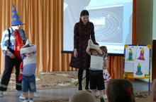 Ребята многое узнали о космосе, о том, что первой в космос отправилась собака Лайка, и о том, что через 3 года покорять космос отправились собаки Белка и Стрелка хотя пробыли в космосе всего один день они удачно вернулись на землю. А на вопрос – «Кто был первым космонавтом?» ребята хором ответили – «Юрий Гагарин!» -