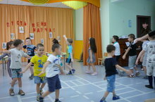 Клоун: Здравствуйте детишки! Девчонки и мальчишки! Я мимо пробегал и вас в окошко увидал. Дай думаю, зайду, и детишек удивлю! Я веселый озорной и довольно молодой! Какие вы все красивые и веселые! Давайте знакомиться! Меня зовут Тишка. Я пришел к вам из цирка. А вас как зовут?