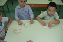 Гульгена Габдылфоатовна научила ребят делать грибы из бумаги.
