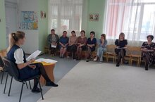 В первой части педагогического совета старший воспитатель Халилова С.Б. познакомила педагогов с особенностями организации работы с детьми по ранней профориентации.